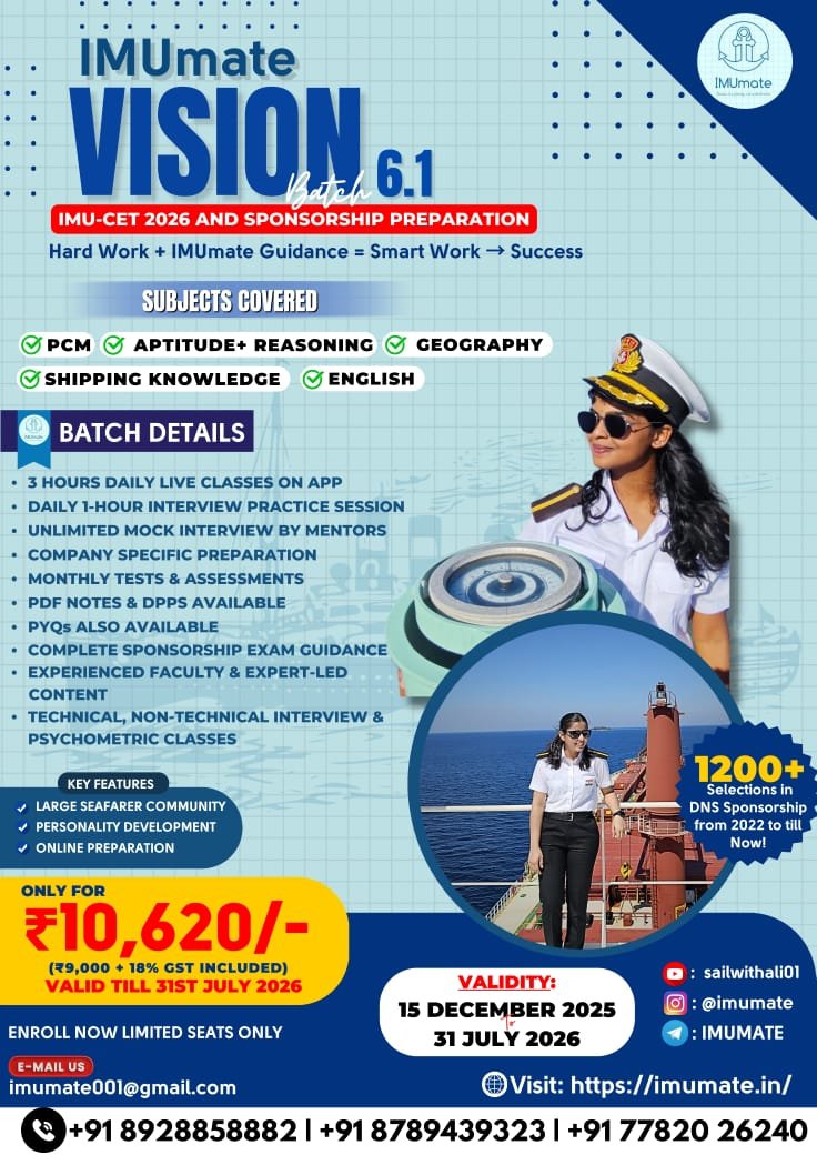 Vision 6.1A | IMU-CET & DNS Sponsorship & B.Sc Nautical Science & B.Tech Marine Engineering Guidance